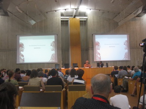 烏爾比諾大學(xué)的會議廳環(huán)形180度的會場分四個區(qū)域,幾乎坐滿了與會代表,我目測約有400-500余人。坐在那里,心里很感慨歐洲人對學(xué)術(shù)的熱情和對學(xué)術(shù)的尊重。當(dāng)然,這是歐洲學(xué)術(shù)的特色,也是歐洲人休假和度假的一個特色。