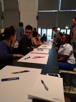 四個(gè)組都派了代表介紹自己小組的“設(shè)計(jì)方案”,最終大家聚焦在四個(gè)選題上:“專業(yè)認(rèn)知過(guò)程中的知識(shí)和權(quán)力”、“通過(guò)跨文化訓(xùn)練設(shè)計(jì)在勞動(dòng)力市場(chǎng)建立平等的機(jī)會(huì)”、“工業(yè)4.0 與勞動(dòng)力市場(chǎng)融合”和“如何提升教師素養(yǎng)”。大家的討論都很認(rèn)真,尤其那些英語(yǔ)水高的年輕學(xué)者發(fā)揮了重要作用,他們聽、說(shuō)、讀、寫樣樣精通,每個(gè)小組都得益于他們,PPT也即時(shí)同步完成。不過(guò)所有學(xué)員的參與熱情十分高漲,各抒己見,當(dāng)然,最終需要形成統(tǒng)一的“綱領(lǐng)”。需要說(shuō)明的是,五場(chǎng)“設(shè)計(jì)方案”課都是在規(guī)定的時(shí)間內(nèi)完成。