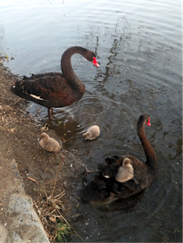 圖片4,2019年3月7號(hào),第238次北京園林徒步。圓明園里的黑天鵝一家五口 (馬英華攝影)