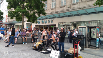 謝菲爾德 曼城到謝菲爾德也是約一個小時的車程,往返車費約24鎊,處于曼城的東部?;疖囇赝緝蓚炔煌谌ネ锲值穆飞?,空間開闊,綠地、農(nóng)地、牛羊、馬匹都很悠閑;小城、農(nóng)家看上去都安然自在,多個小站都有游者背著行囊成群結隊地下車,去爬山、去郊游、去徒步旅行、去呼吸新鮮空氣……路過至少路過兩個河道,見有人仍以傳統(tǒng)人工方式開閉閘門,古樸且自然。很有趣! 謝菲爾德火車站是一個老建筑,規(guī)模挺大。站前區(qū)比較安靜,來往的旅客不是很多,我選擇了一條路并沒有什么人,安靜得很,人少、車也少。走了一些時辰,居然走到了一條商業(yè)街,人比較多,分不出來當?shù)厝诉€是外地人,但是未見中國游客,倒是遇見幾個中國留學生。一群學生手持彩色氣球有節(jié)奏地舞蹈著,像是一個什么活動???我倒是被一陣充滿激情的音樂所吸引,趕過去一看,一個四人樂隊正在街頭演唱,許多人圍觀,且送去陣陣掌聲。一個打架子鼓、一個吉他、一個貝斯、一位歌者。這位歌者的聲音很像中國歌手楊坤的聲音,獨特而深沉,十分打動人心。在他停下來的時候,他鼓勵大家買他的唱碟,10英鎊,并誓言:“你們在支持未來的No.1”。觀看者紛紛購買,我也買了一張碟,并請四位簽名,與他們合影留念!喔塞,我成了粉絲了!好聽的音樂真有感染力。