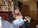 (照片說明:左圖,我母親晚年給我縫補(bǔ)破了的舊被單;右圖是母親年輕時的照片)