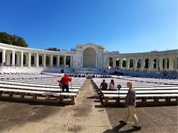 (左圖是毗鄰國會大廈的“國家大法院”門外場景;右圖是從國會大廈通往白宮路上的“攤販車”) 值得一說的阿靈頓國家公墓,在莊嚴(yán)肅穆靜謐中銘記了為“美國夢”獻(xiàn)身的各路英豪與將領(lǐng),更有數(shù)千名無名英雄安葬于此。這是華盛頓最著名的景點(diǎn)之一,從入口到出口、游覽線路、門票價格等等都設(shè)計合理,體現(xiàn)出對愛的傳遞和精神啟蒙的服務(wù)宗旨。游客雖多,素養(yǎng)卻普遍高,秩序也井然。因錯過我乘坐的游覽車,打算搭乘一個旅行團(tuán)專車,不知可否?向?qū)в握f明情況后,她熱情地請我入座,并贈與一朵精致的“罌粟花”,免費(fèi)享受了旅行團(tuán)的待遇。“佩戴罌粟花”向犧牲者致敬是西方近代文化傳統(tǒng)之一。旅游業(yè)的本質(zhì)屬性在于“傳遞愛”和“精神品質(zhì)”,如此,旅游業(yè)才能長盛不衰。在這兒,我感受到了。
