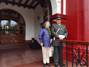 (左圖:在圣地亞哥文化遺產(chǎn)圣盧西亞山門前;右圖:與女警察合影)