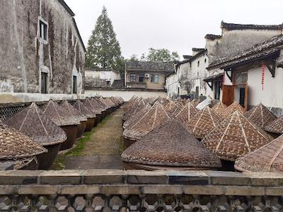 (蘭溪市委書記戴翀右二與大家交流) 馬惠娣認(rèn)為,與二十多年前相比,蘭溪的變化很大,得益于幾代主政領(lǐng)導(dǎo)的遠(yuǎn)見卓識(shí)。這些古村古鎮(zhèn)古民居生活形態(tài)不僅得到了完整的保護(hù),也在修舊如舊中煥發(fā)出新的生機(jī)與活力。在這里,我們看到了來自全國(guó)各地的游客、尋訪者、采風(fēng)作家團(tuán)及回鄉(xiāng)省親者等等,在歡聲笑語中不停地贊嘆也驚嘆古村鎮(zhèn)在復(fù)興中展現(xiàn)的新價(jià)值和新的情感鏈接紐帶。 (考察古鎮(zhèn)與游客聊天) 坐落于游埠鎮(zhèn)的“相機(jī)博物館”擁有世界上最古老的一款萊卡相機(jī),中國(guó)二十世紀(jì)七十年代初制造的“紅旗牌”相機(jī),最早的三D觀影機(jī),三千多架相機(jī)中有多款幾乎是世界上僅有的孤品。相信攝影愛好者們一定到此賞寶,并不虛此行。 (相機(jī)博物館館長(zhǎng)卜先生說:“紅旗牌”相機(jī)當(dāng)時(shí)僅生產(chǎn)72架) 純手工醬油釀制在這里仍保留古法,我們“在場(chǎng)”感受到了老技工們對(duì)手藝的一絲不茍。還值得一說的是,市委書記戴翀請(qǐng)求進(jìn)去實(shí)地參觀,被工作人員攔下。她說,釀制過程嚴(yán)防雨水滴入,是為了保證醬油的品質(zhì)。我們雖然沒能進(jìn)入現(xiàn)場(chǎng),卻感受到了“誠(chéng)信大于天”的品質(zhì),得到了我們一行人的尊重。 (手工釀制醬油的晾曬場(chǎng)) 剛剛開張的“八珍面館”,以獨(dú)特的工藝制作味道獨(dú)特的面條,有傳統(tǒng)、有創(chuàng)新,有獨(dú)門絕技,又有賓至如歸的待客理念。