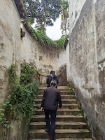 (相遇的研習(xí)團(tuán)部分成員) 不論是游埠鎮(zhèn)還是諸葛村,古人設(shè)計(jì)的“排水道”,讓我們?cè)俅晤I(lǐng)略了農(nóng)耕文明中的生活智慧與宜居生態(tài)文明的范例,可以說,具有不得不被征服的文化魅力。 諸葛村的祠堂大多保護(hù)完好,我們拜遏了“大公堂”,吟誦了“誡子書”——“夫君子之行,靜以修身,儉以養(yǎng)德。非淡泊無以明志,非寧靜無以致遠(yuǎn)。夫?qū)W須靜也,才須學(xué)也,非學(xué)無以廣才,非志無以成學(xué)……”兩位挪威學(xué)者心靈受到了習(xí)禮,并希望將“靜以修身,儉以養(yǎng)德”作為座右銘。坐在講堂的課桌前要 “當(dāng)諸葛亮的現(xiàn)代學(xué)生”(貝皓陽語)。中國(guó)文化的精髓就這樣輕而易舉地熏襲了老外。 (穿越在諸葛亮“誡子書”中,做諸葛亮現(xiàn)代的學(xué)生) 這時(shí)不僅讓我們想起那句“越是民族的,越是世界的”箴言,“有地方色彩的,倒容易成為世界的,即為別國(guó)所注意。打出世界去,即于中國(guó)之活動(dòng)有利”(魯迅)。在源遠(yuǎn)流長(zhǎng)歷史中積淀的充滿智慧的煙火氣,洋溢古人自然觀的市井生活氛圍,讓人在駐足中增添了責(zé)任與力量。 李漁,明末清初文學(xué)家、戲劇家、戲劇理論家、美食家,亦被稱為“幫閑文人”,是蘭溪史上最靚麗的文化名片,在過去的四百余年間滋養(yǎng)了這片大地。尤以《閑情偶寄》中留下的飲食文化、飲食技藝、飲食倫理,以及他親手耕耘的“芥子園”成為中國(guó)文化史上獨(dú)樹一幟的文化坐標(biāo)。我們遇見一輛滿載四十余位義烏作家代表團(tuán)的大巴車到“芥子園”采風(fēng)。蘭溪市政協(xié)副主席陳興兵,同時(shí)任“蘭溪李漁文化賦能工程指揮長(zhǎng)”,他長(zhǎng)期研究李漁和李漁文化,對(duì)李漁如數(shù)家珍,他的講解傾倒了大批游客。這樣的指揮長(zhǎng)如何賦能新蘭溪,是時(shí)代給他的新考題。